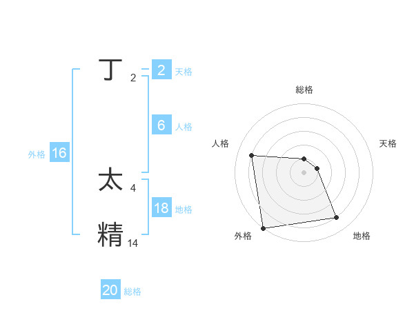 丁 太精さんの総格は20画の1点!