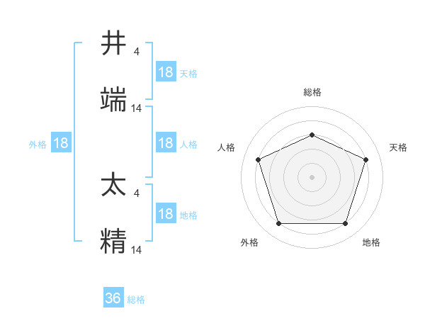 井端 太精さんの天格は18画の4点!