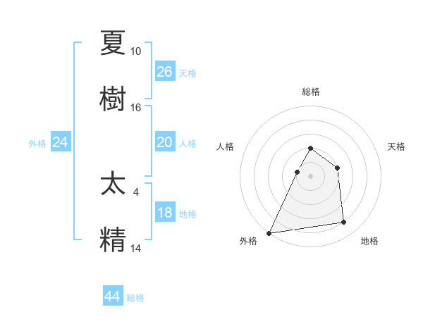 夏樹 太精さんを姓名の画数から五運を鑑定
