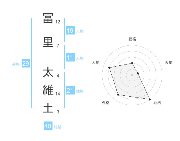 冨里 太維土さんを姓名の画数から五運を鑑定