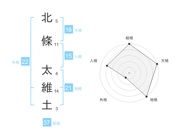 北條 太維土さんの総格は37画の5点!