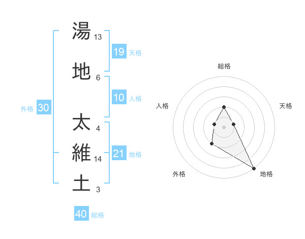 湯地 太維土さんを姓名の画数から五運を鑑定
