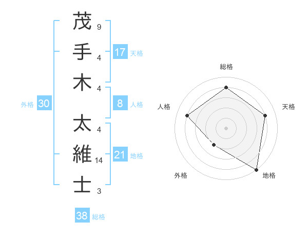 茂手木 太維士さんを姓名の画数から五運を鑑定