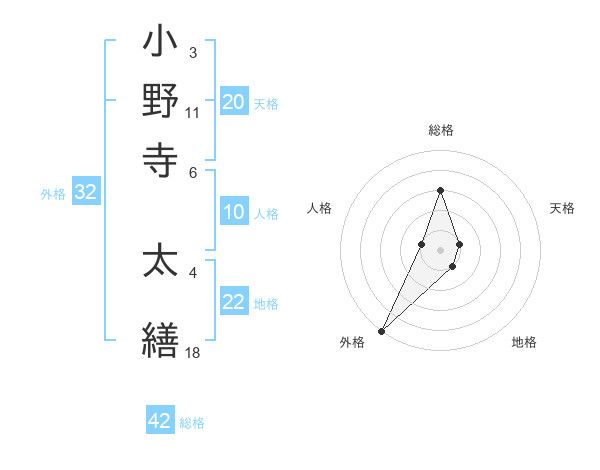 小野寺 太繕さんの総格は42画の3点!