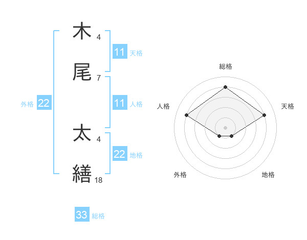木尾 太繕さんを姓名の画数から五運を鑑定