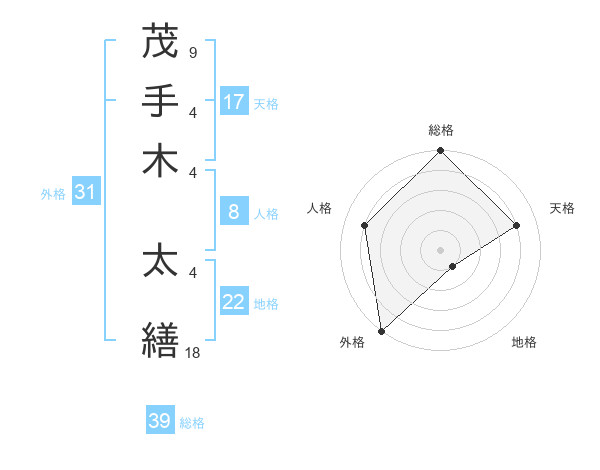 茂手木 太繕さんの総格は39画の5点!