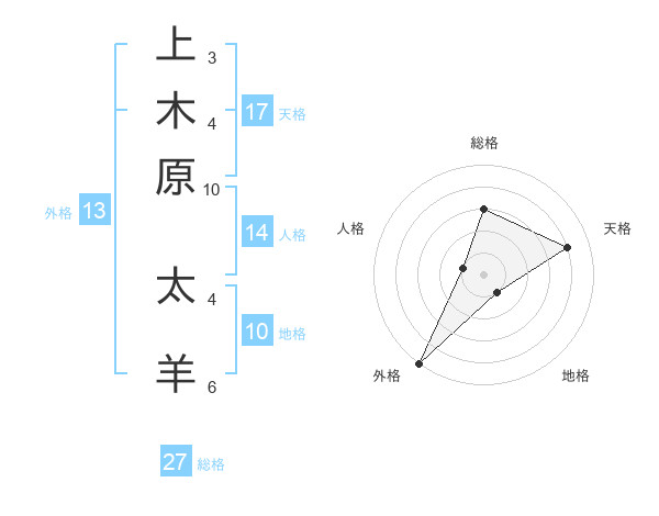 上木原 太羊さんを姓名の画数から五運を鑑定