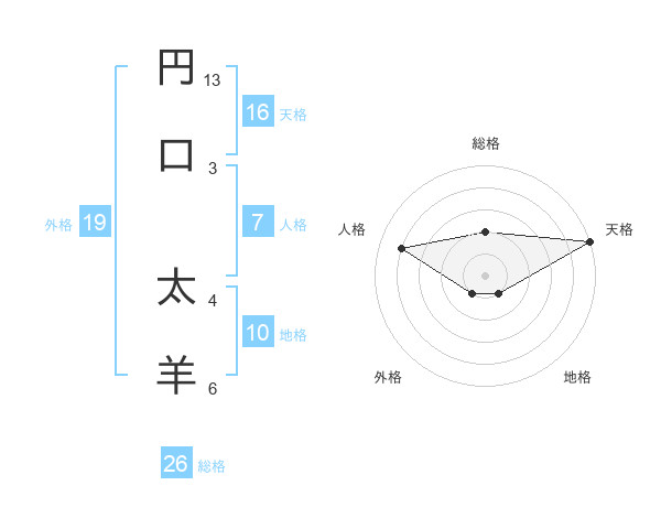 家系が持つ宿命的な運勢を表します。祖先から受け継いだ苗字ですので自分の力が及びません。家柄を象徴します。