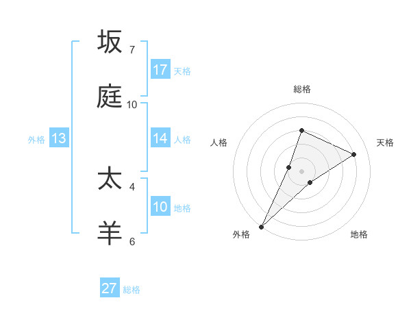 坂庭 太羊さんを姓名の画数から五運を鑑定
