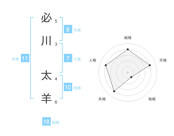 必川 太羊さんの総格は18画の4点!