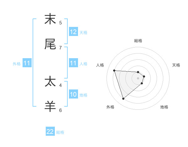 末尾 太羊さんの総格は22画の1点!
