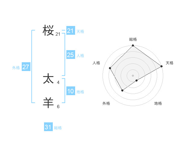 桜 太羊さんの天格は21画の5点!