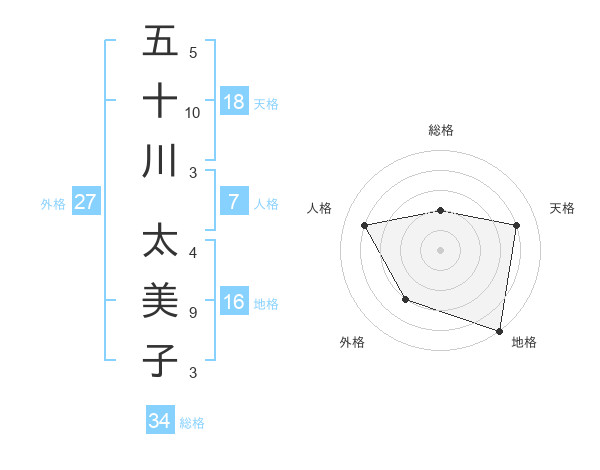 五十川 太美子さんの総格は34画の2点!