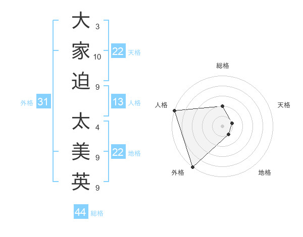 大家迫 太美英さんの総格は44画の2点!