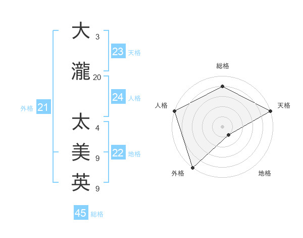 大瀧 太美英さんを姓名の画数から五運を鑑定