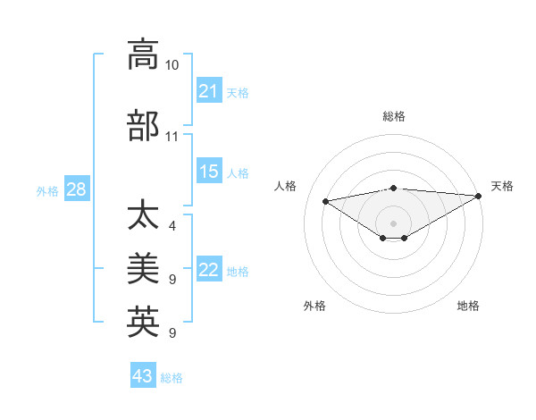 高部 太美英さんの天格は21画の5点!
