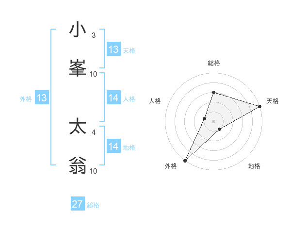 小峯 太翁さんの外格は13画の5点!