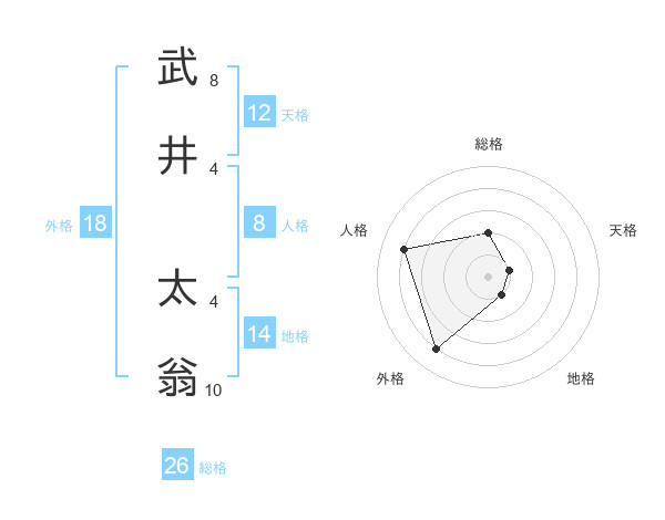 武井 太翁さんの総格は26画の2点!