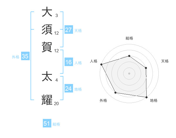 大須賀 太耀さんの総格は51画の3点!