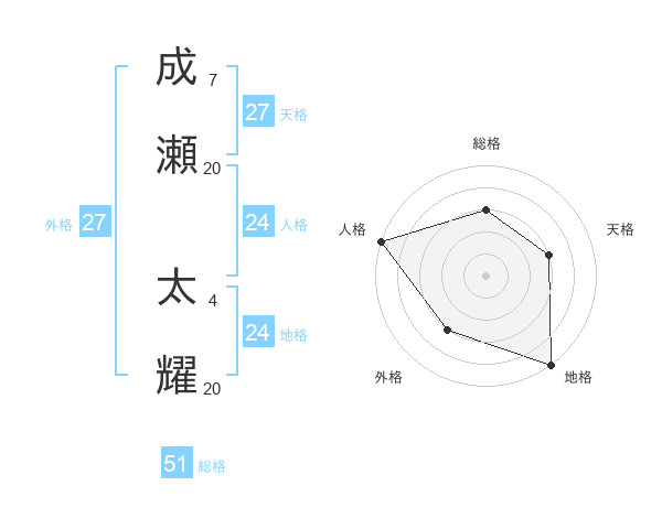 成瀬 太耀さんの天格は27画の3点!