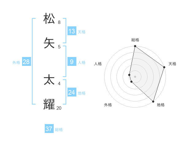 松矢 太耀さんの総格は37画の5点!