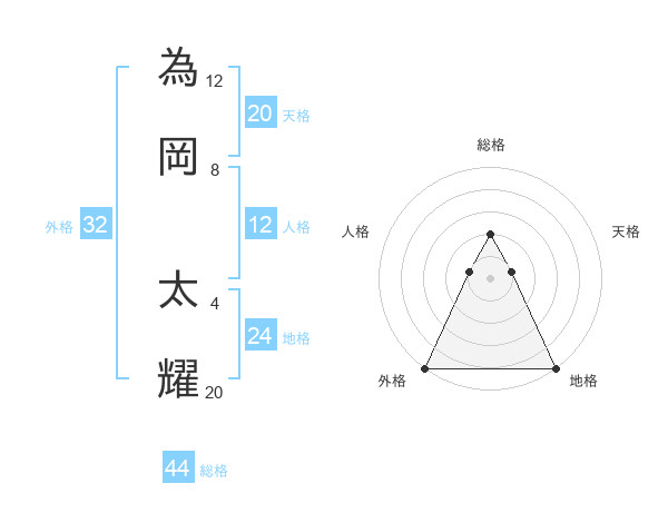 為岡 太耀さんを姓名の画数から五運を鑑定
