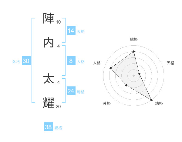 陣内 太耀さんの総格は38画の4点!