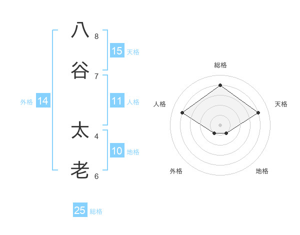 八谷 太老さんの総格は25画の4点!