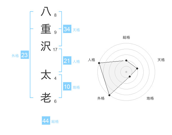 八重沢 太老さんを姓名の画数から五運を鑑定