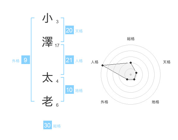 小澤 太老さんの総格は30画の2点!