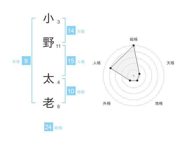 小野 太老さんの総格は24画の5点!