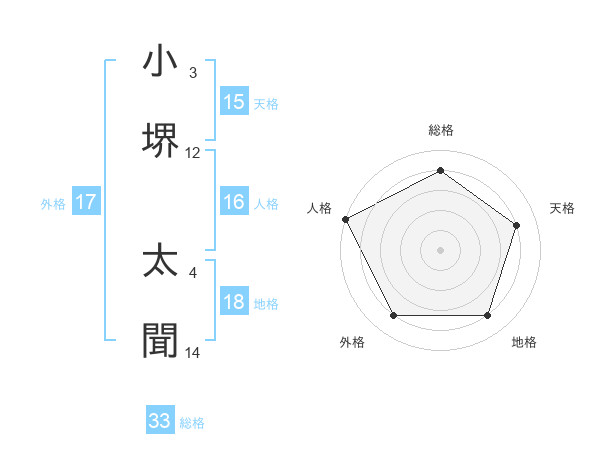 小堺 太聞さんを姓名の画数から五運を鑑定