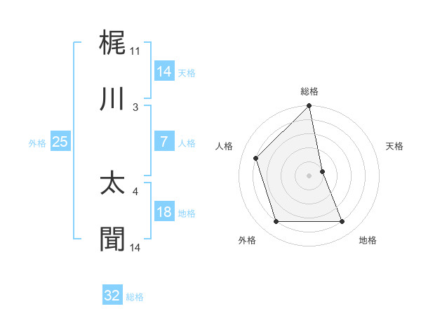 梶川 太聞さんを姓名の画数から五運を鑑定
