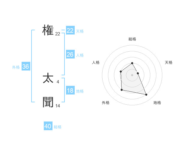 権 太聞さんの総格は40画の2点!