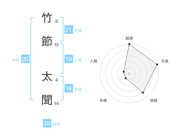竹節 太聞さんを姓名の画数から五運を鑑定