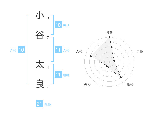 小谷 太良さんの総格は21画の5点!