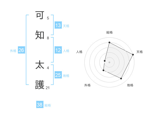 可知 太護さんの天格は13画の5点!