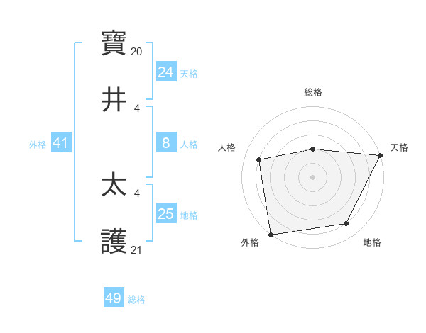 寶井 太護さんの総格は49画の2点!