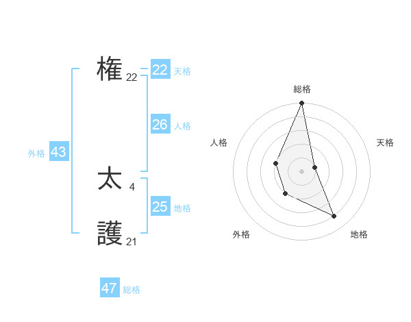 権 太護さんの地格は25画の4点!