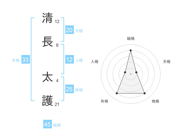 清長 太護さんの総格は45画の4点!