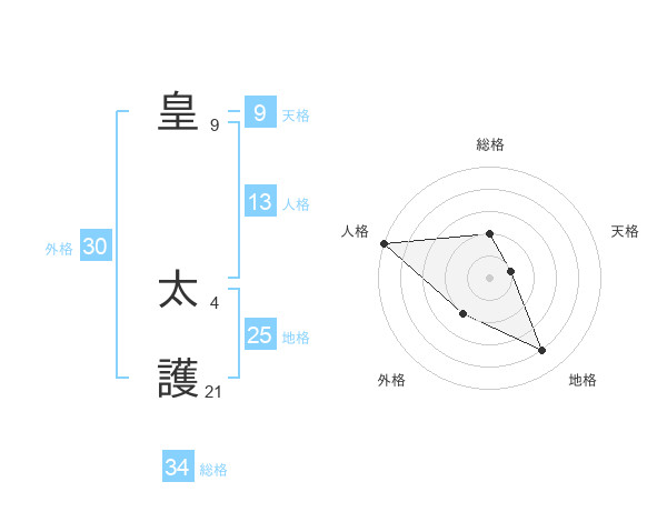 皇 太護さんの総格は34画の2点!