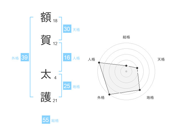 額賀 太護さんの総格は55画の1点!