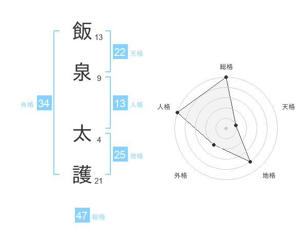 飯泉 太護さんの総格は47画の5点!