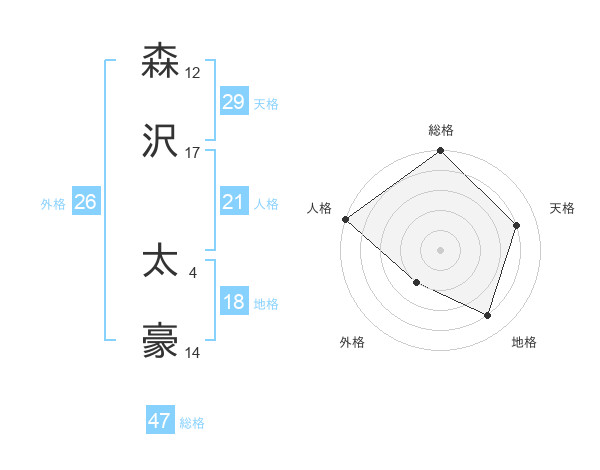 森沢 太豪さんの天格は29画の4点!