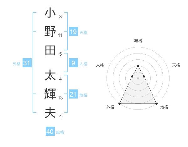 小野田 太輝夫さんを姓名の画数から五運を鑑定