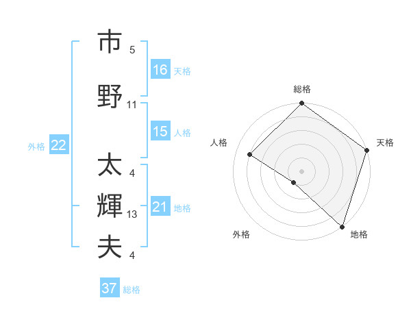 市野 太輝夫さんの総格は37画の5点