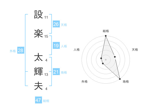 設楽 太輝夫さんの総格は47画の5点!
