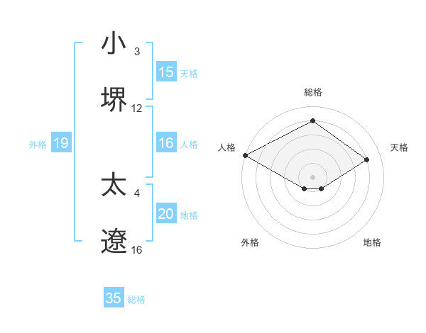 小堺 太遼さんを姓名の画数から五運を鑑定