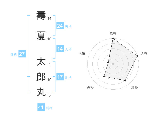 壽夏 太郎丸さんの天格は24画の5点