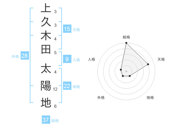 上久木田 太陽地さんを姓名の画数から五運を鑑定